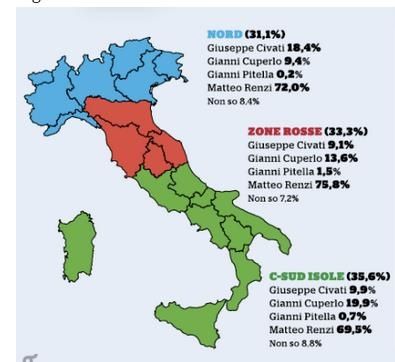 Tutti i dati di queste ore mettono insieme circoli piccolissimi, in cui si esprimono poche decine di voti, e se ne tracciano tendenze regionali o peggio ancora nazionali trionfalistiche – nel migliore dei casi parliamo di 20mila voti su oltre 300mila attesi da qui a lunedì.